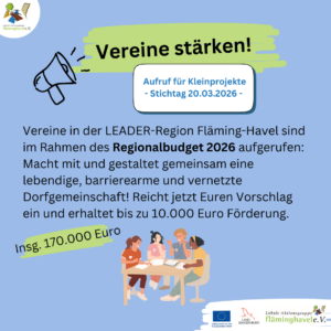 Die Lokale Aktionsgruppe (LAG) Fläming–Havel e.V. unterstützt, begleitet und fördert Projekte unter dem Motto „Miteinander statt nebeneinander in der Region Fläming–Havel“.